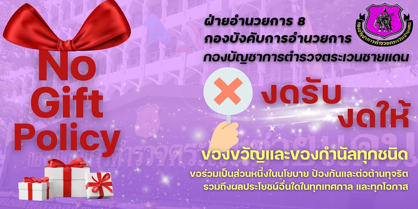 ประกาศเจตนารมณ์ที่จะไม่รับของขวัญและของกำนัลทุกชนิดจากการปฏิบัติหน้าที่ (No Gift Policy)