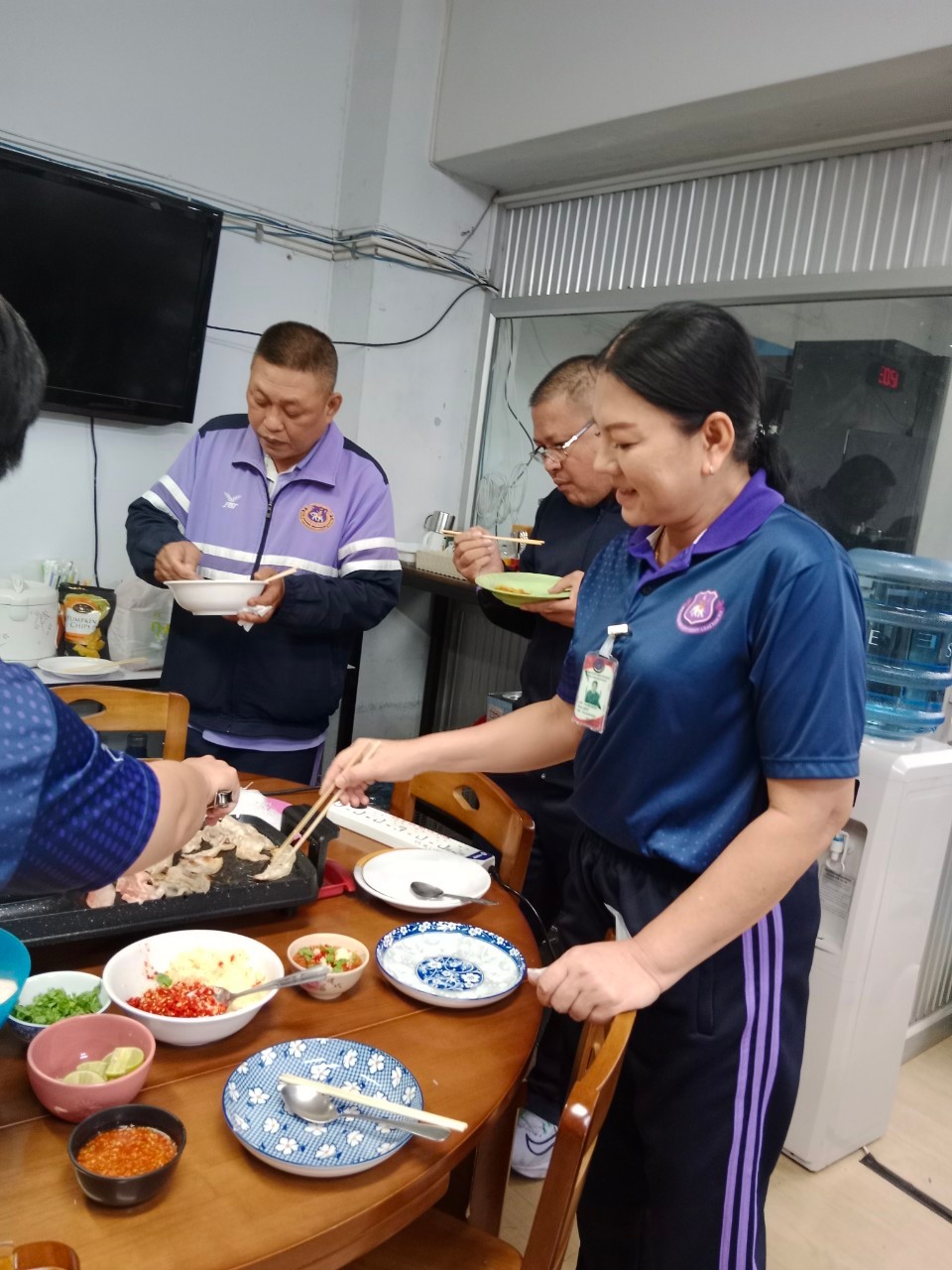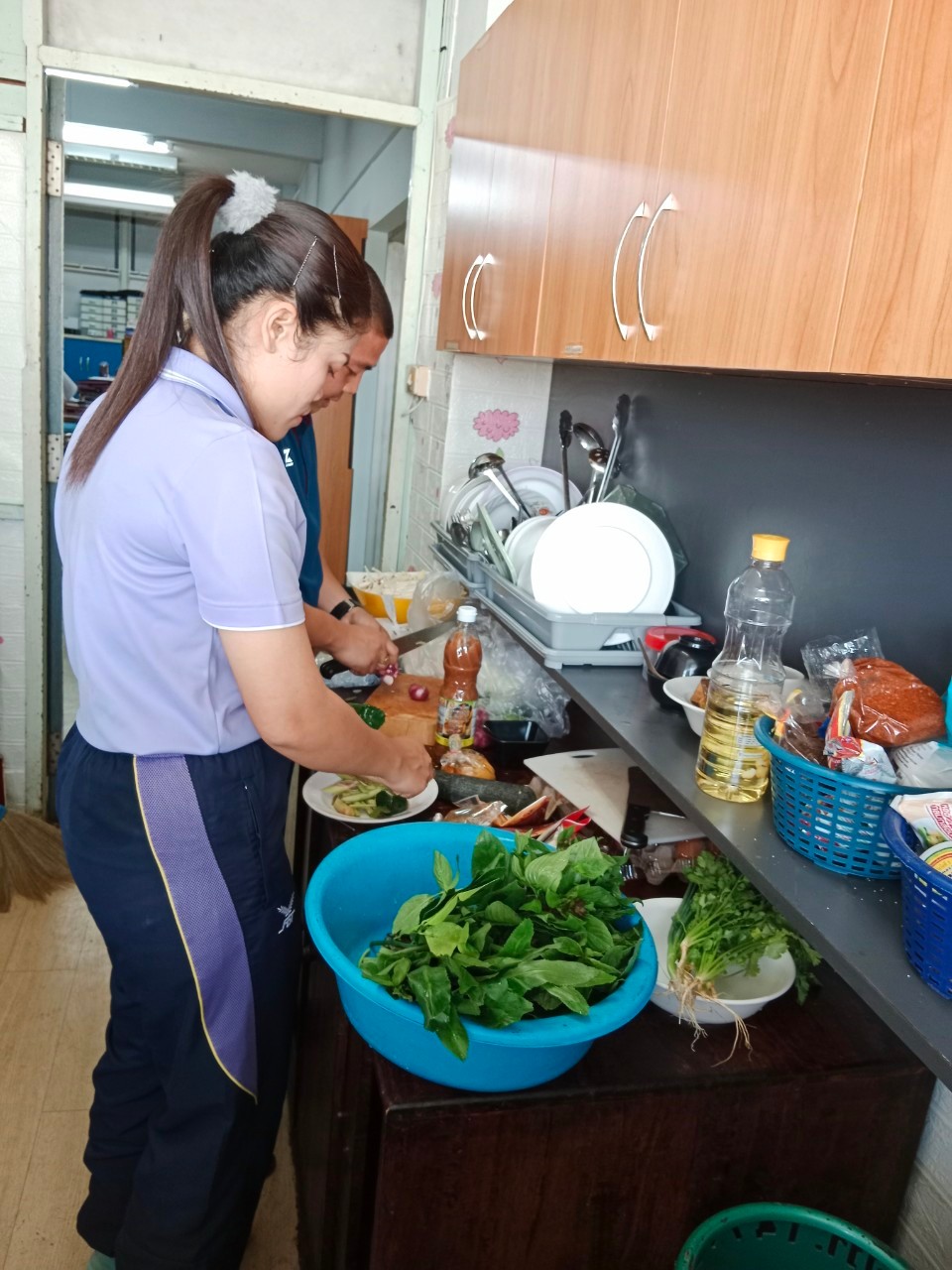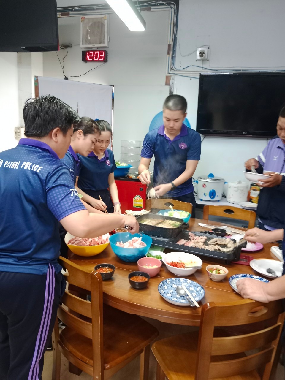 ภาพบรรยากาศการร่วมกันปรุงอาหารกลางวัน ตามสวัสดิการอาหารกลางวันของ ฝอ.8 บก.อก.บช.ตชด.